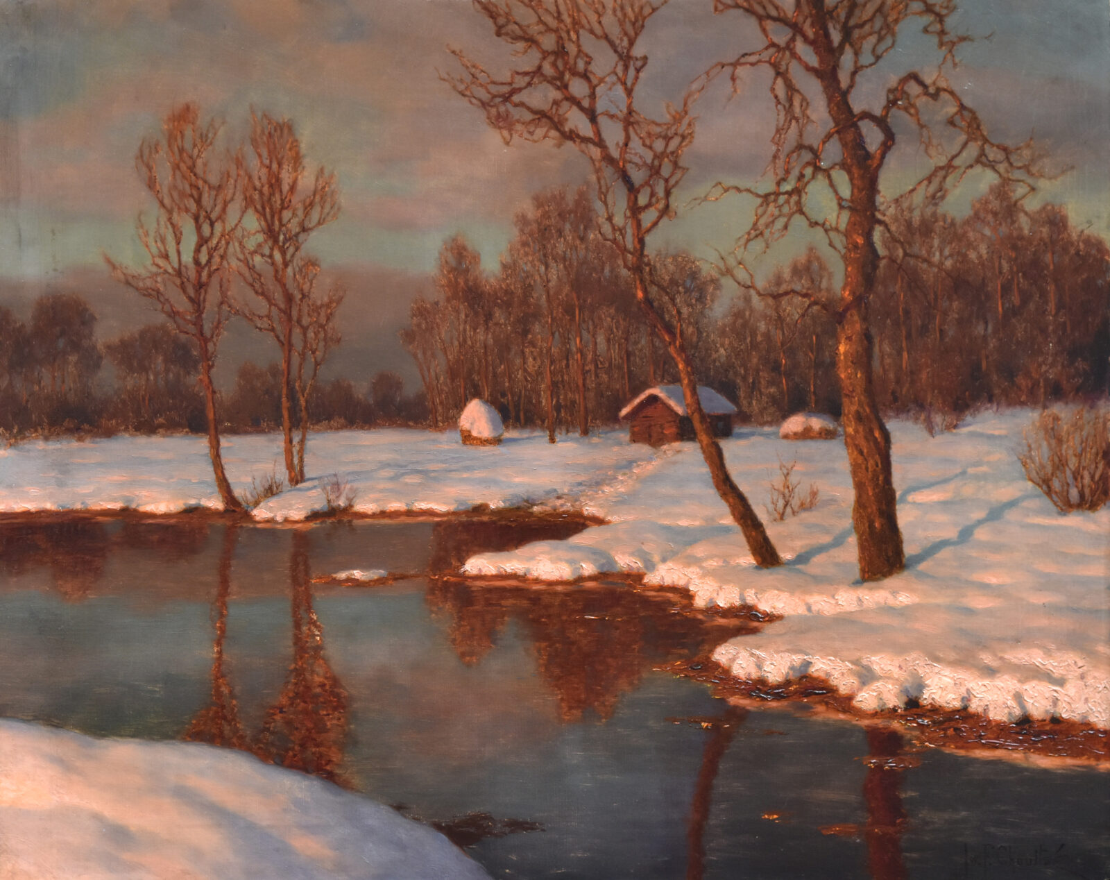Né à Saint-Pétersbourg dans une famille allemande, Ivan Choultsé s’oriente d’abord vers des études d’ingénieur électricien, avant d’être encouragé par Constantin Kryjitski à rejoindre l’Académie Impériale des Beaux-Arts. En 1907, il entreprend un voyage en Norvège et à l’île de Svalbard, aux côtés de Kryjitski et d’Arkhip Kouïndji, dont il rapporte une série de paysages arctiques. Cette expérience marque profondément son imaginaire : la fascination pour les scènes hivernales et les effets lumineux de la neige et de la glace ne le quittera plus.