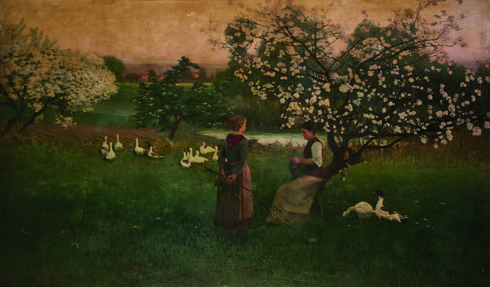 Élève à l’École des beaux-arts de Paris sous la férule de Jules Lefebvre et Benjamin-Constant, Bouchor expose au Salon des artistes français dès 1878. Grand voyageur, il puise son inspiration dans les paysages d’Italie, du Maroc et d’Égypte avant de découvrir, dans les années 1880, la Normandie. Installé à Freneuse vers 1886, séduit par les rives de la Seine, il y séjourne près de quinze ans, à sa période de pleine maturité artistique. Ce village et ses habitants deviennent des motifs récurrents de son œuvre, incarnant une vision poétique et intime de la vie rurale.